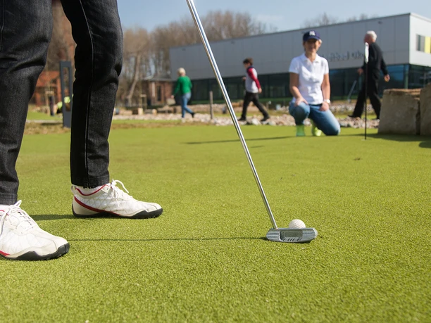 Whether as a family, group of friends, club or company outing: you can swing a club at the Stadtbad Okeraue all week long. The aim of adventure golf is to overcome obstacles such as sand bunkers or stone boulders with a mini-golf club or golf putter. The fairways are made of materials and shapes based on nature, are usually between eight and fifty meters long and have terrain deformations. Depending on their preference, players can stick to the simplified rules of the German Golf Association or follow the well-known rules of mini golf with as few strokes as possible.